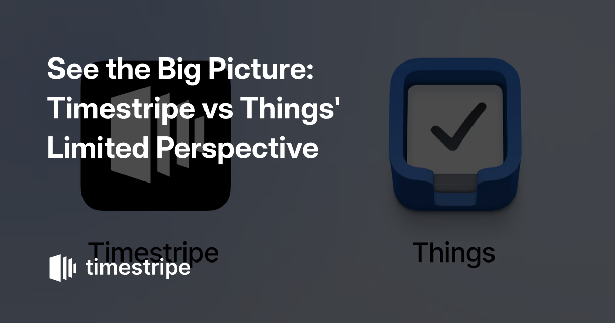 Both Timestripe and Things help you stay organized and get things done, but they take different approaches. Timestripe leans into long-term planning and aligning tasks with bigger goals, while Things focuses on elegant simplicity and helping you manage your daily to-dos without friction. Here’s a detailed look at how they compare.